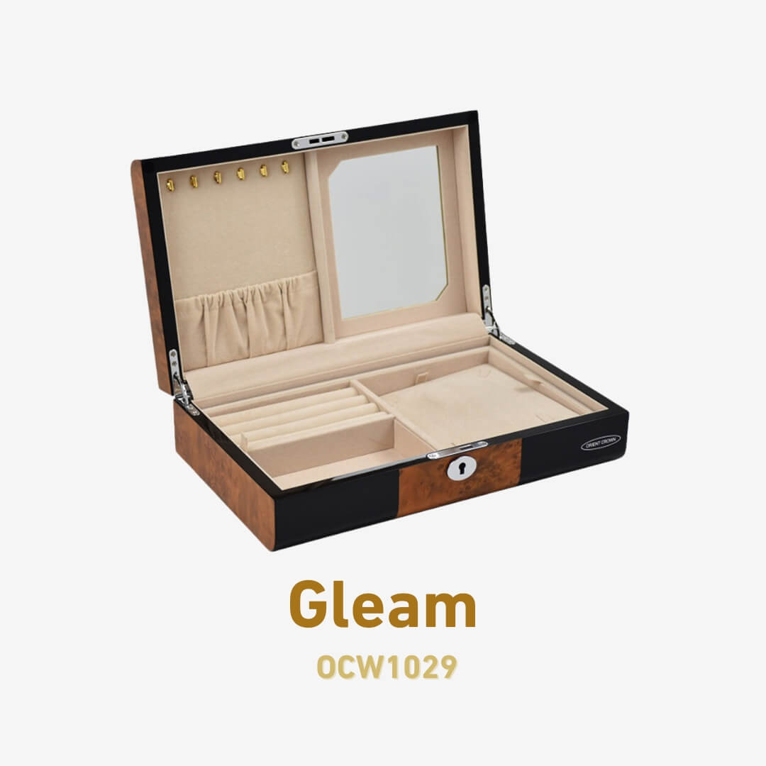 Embark on a journey with Orient Crown's 'Elegant Jewelry Box', intertwining luxurious design and pragmatic, durable elegance." Our collection, with its affluent finishes and sturdy materials, provides versatile storage and innovative security features across a variety of shapes and sizes, ensuring your precious adornments are both elegantly displayed and securely stored.