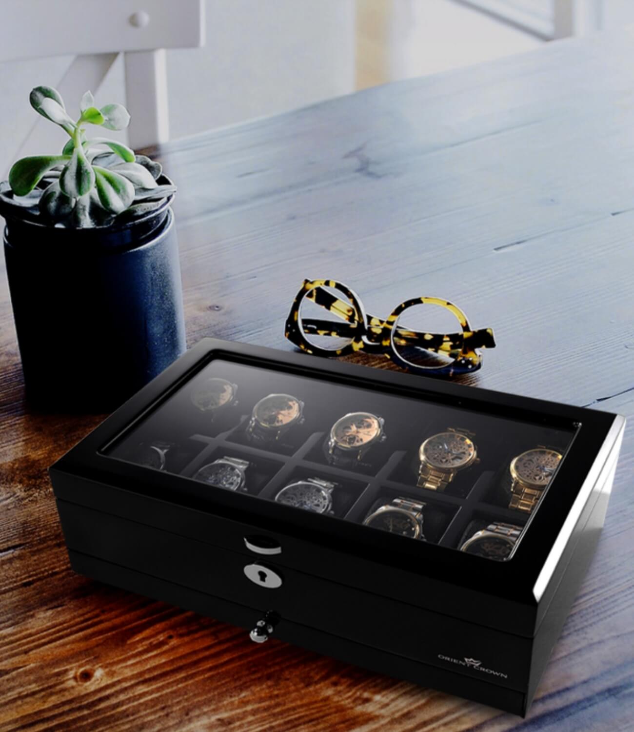 Plunge into Orient Crown's royale watch box collection, a universe teeming with meticulously crafted citadels for your cherished timekeepers. We introduce a cryptic dance of designs, oscillating between the undying classical and the boldly avant-garde, each piece an uncharted territory in the cosmos of watch preservation. Permit your senses to be allured by the unordinary, as every selection whispers an arcane tale of timeless elegance mingled with inscrutable artistry. Orient Crown invites you, a connoisseur of the horological, to decipher the mysteries entwined within our latest collection.