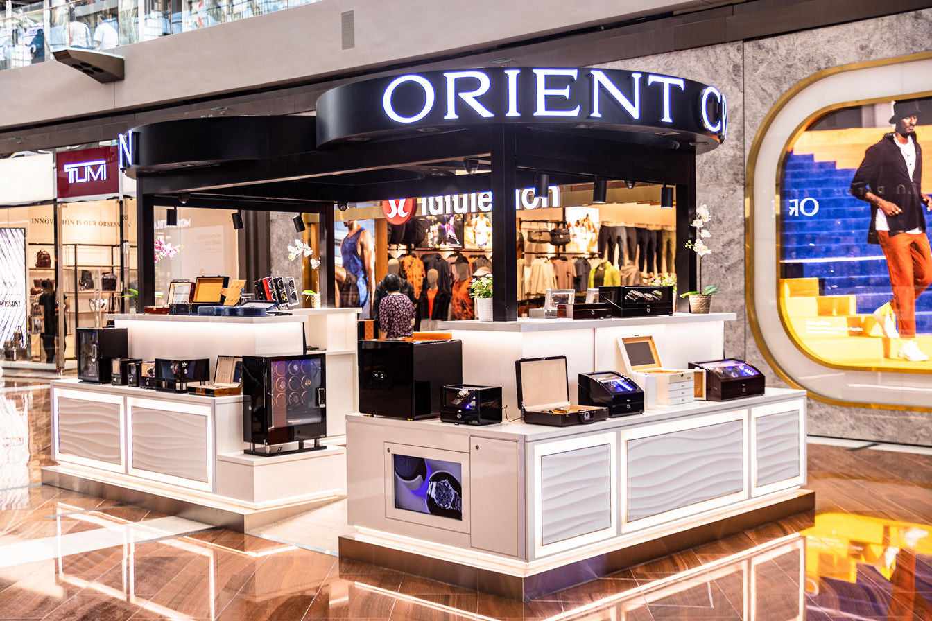 The new ORIENT CROWN kiosk is now open in the heart of MBS, with a dedicated team ready to help customers find the perfect watch winder for any collection.