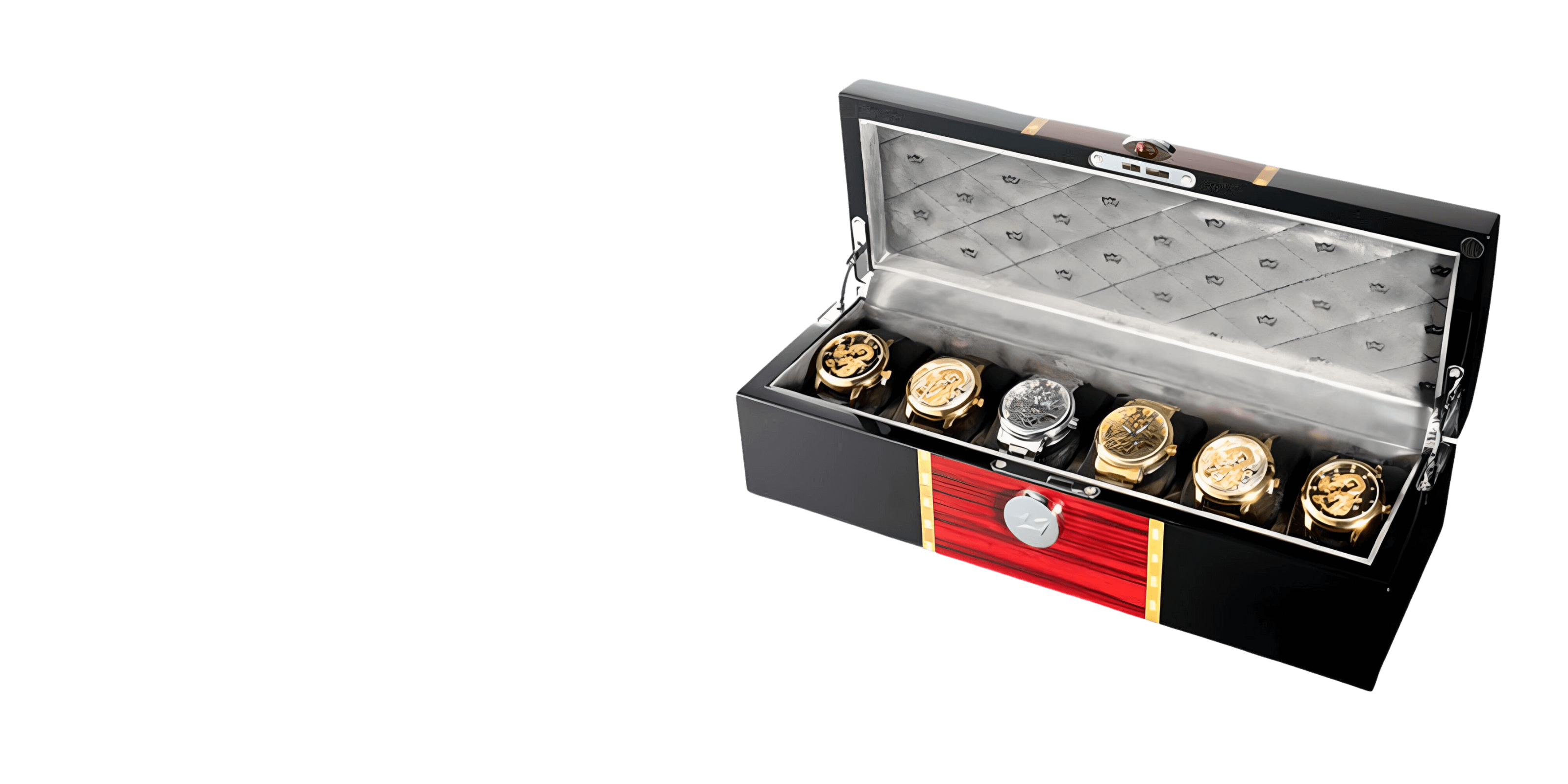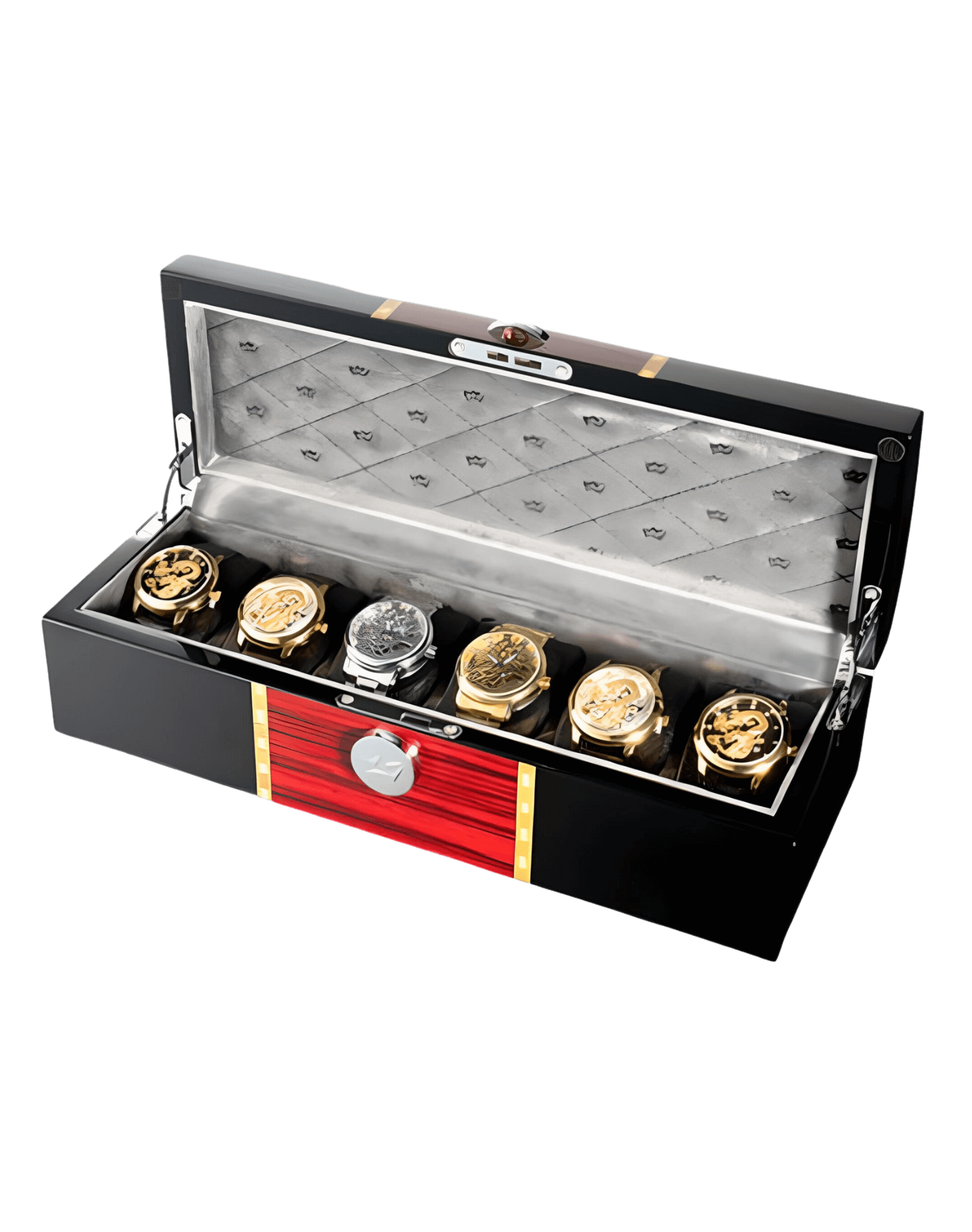 Maximize elegance and efficiency with this six-compartment watch chest; each cushioned space is tailored for secure, adaptable storage within a sleek, space-conscious design.