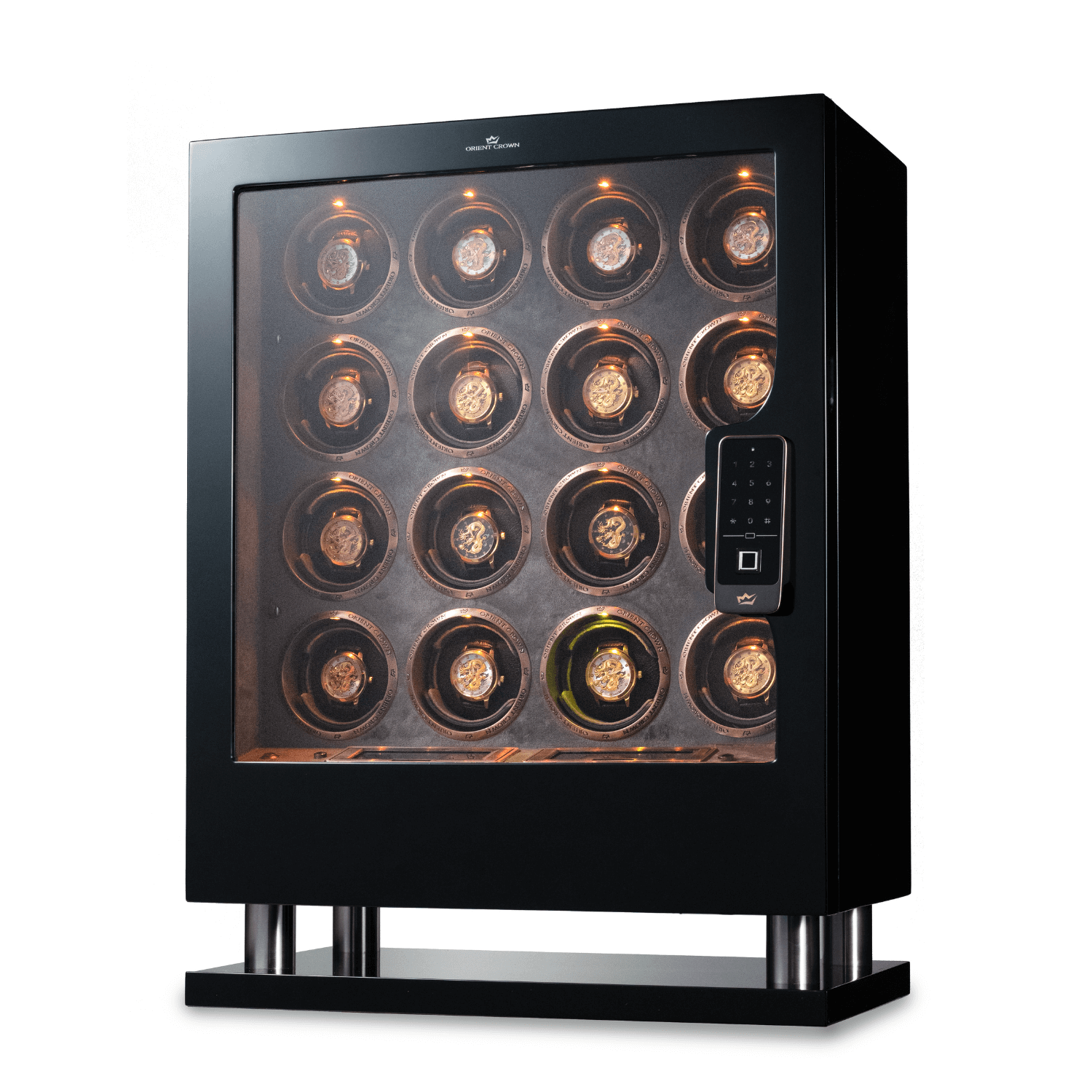 - A lockable door with multiple locking systems and hinges, combined with a tempered glass front, unveils the souls of your timepieces. This design lets you feel every heartbeat of the passing moments.