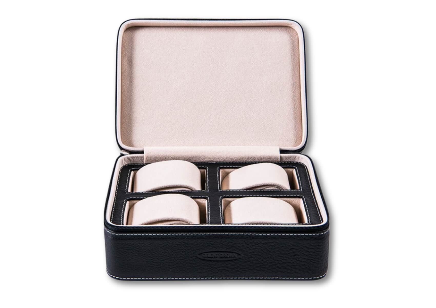 Our travel watch cases boast a diverse range of premium materials tailored to each product. Depending on the specific case, you might find exteriors crafted from high-strength carbon fiber, durable aluminum, or luxurious Italian leather, all combined with precision engineering and design to ensure optimum protection and style.
