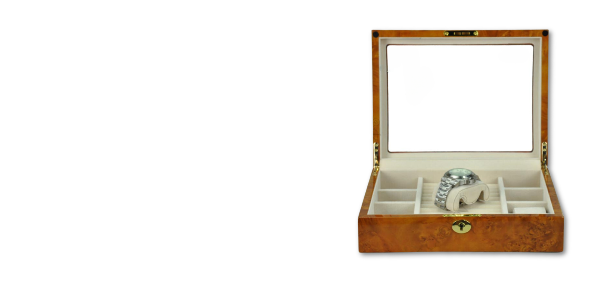- Designed with intention, the Radiance features spacious compartments—each serving a purpose, from watch storage to a special tray for necklaces, keeping your collection perfectly arranged.