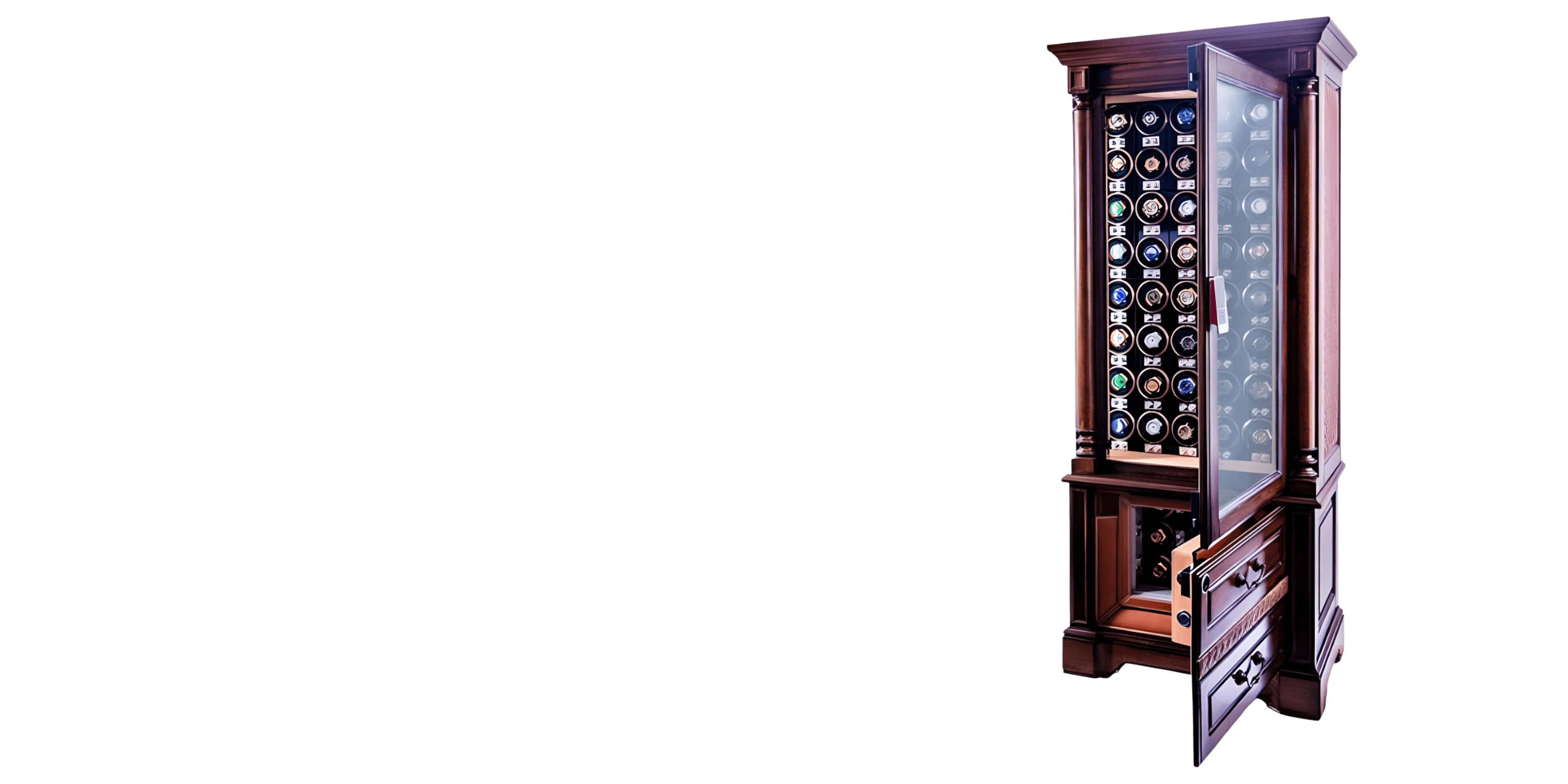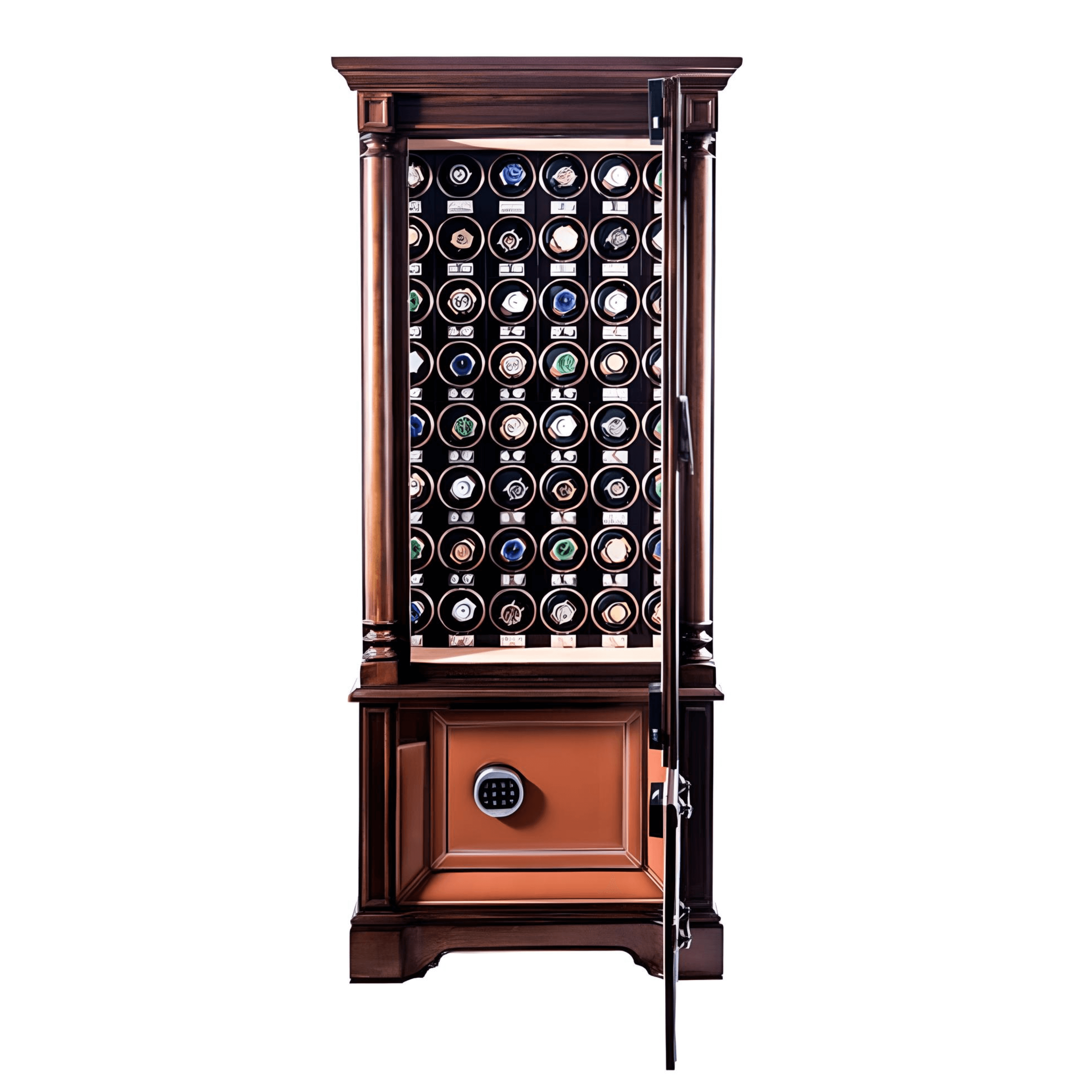 The CAESAR SERIES boasts 57 Time Park® winders, crafted for all watch varieties. Silent Japanese motors drive each turn, with 9 dedicated to the bottom safe. Every motion epitomizes precision and artistry.